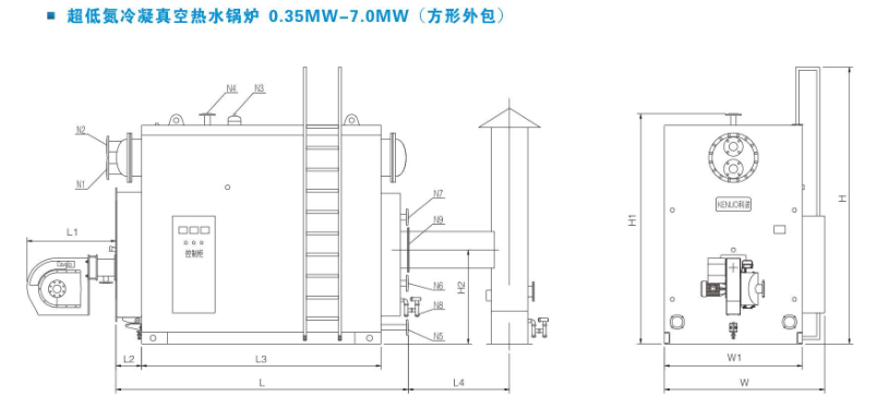 WZK型低氮(NOX<30-50mg/m3)冷凝燃气真空热水锅炉外形尺寸-示意图