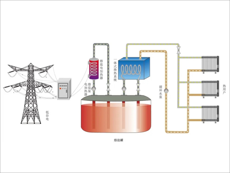 熔盐储槽电加热器2022-10-19熔盐储槽电加热器:熔盐储能原理熔盐储槽储能分为蓄热与放热两个工作过程。蓄热过程:采用智能互补系统将风电,光伏、夜间低谷电作为加热熔盐的能源,通过加热熔盐存储可再生能源或低谷电能。放热过程:在换热系统中高温熔盐与水换热,产生热水与蒸汽,供工艺用热设备用蒸汽与热水。三、熔盐储能系统类型双罐系统(热盐罐与冷